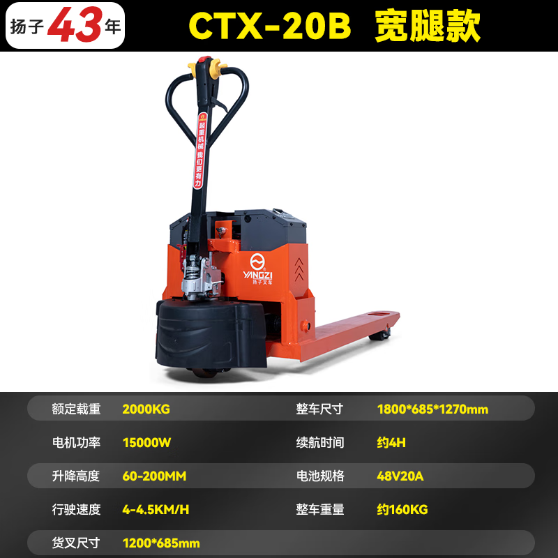 揚(yáng)子半電動搬運(yùn)車CTX,電動行走強(qiáng)勁載重,永磁無刷電機(jī)/高品質(zhì)油缸/鉛酸鋰電可選