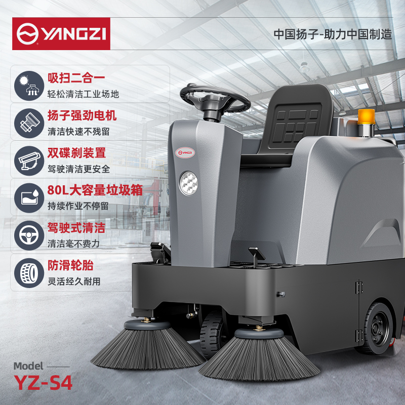 揚子掃地機(jī)YZ-S4,大型工廠清潔,力度大吸力強(qiáng),掃吸灑三合一/大容量垃圾箱/液壓雙碟剎/揚子強(qiáng)勁電機(jī)/應(yīng)用領(lǐng)域廣泛/輕松爬坡