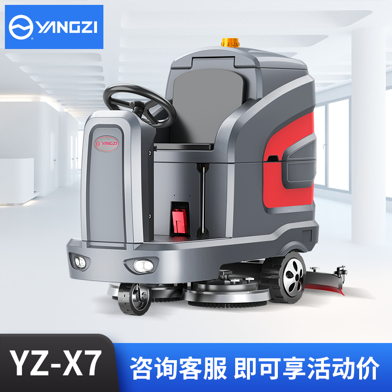 揚子X7駕駛式洗地機的清洗操作面板一目了然,操作更加簡單快捷;配備了橡膠大滾輪,摩擦力更大,避免了設備在操作過程中打滑的問題,駕駛更加安全。X7駕駛式洗地機使用鋁鑄吸水扒,耐高壓抗撞擊能力更強,設備可以實現(xiàn)180°旋轉,設備吸污效果更好;百潔墊使用進口尼龍絲,高密度用料多;耐磨損的同時使用壽命更長,而且不易變形,清洗效果好。